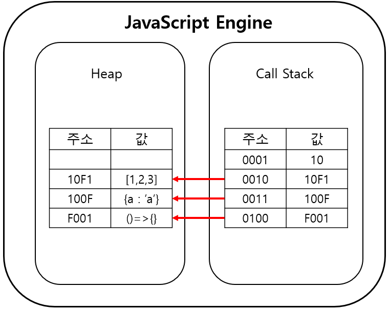 참조 타입(객체 등) 데이터 들이 저장되는 공간이다.