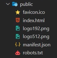 - favicon.ico : React 아이콘 (크롬 브라우저 탭 상단에 위치)