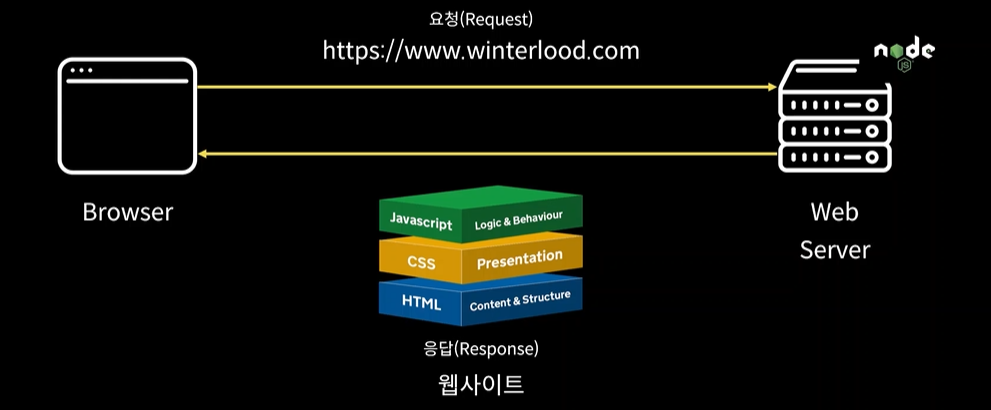 일반적으로 자바스크립트는 웹 브라우저 위에서 html 의 버튼 클릭 이벤트를 처리하는 등의 interaction 외의 할 수 있는 일이 없었다.